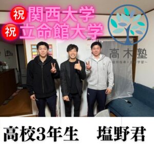 現在の受講生は 近畿大学・関西学院大学・大阪工業大学・関西大学 etc..を目指しています。