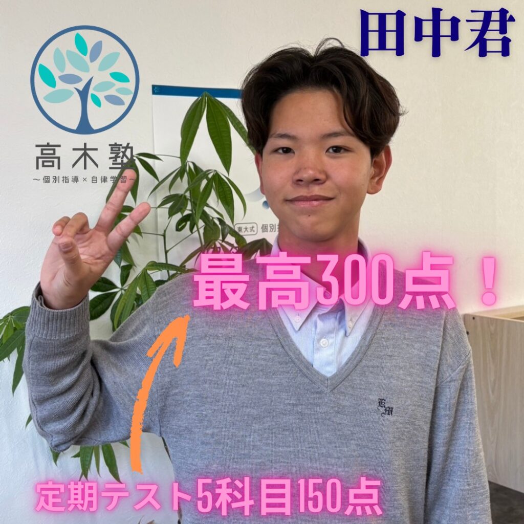 入塾当初は“勉強が嫌い・やり方も分からない”という状態でした。しかし今では 定期テスト150点 → 300点へと大幅アップ。勉強への姿勢が大きく変わり、目標に向かって努力し続けられる生徒へと成長しています。